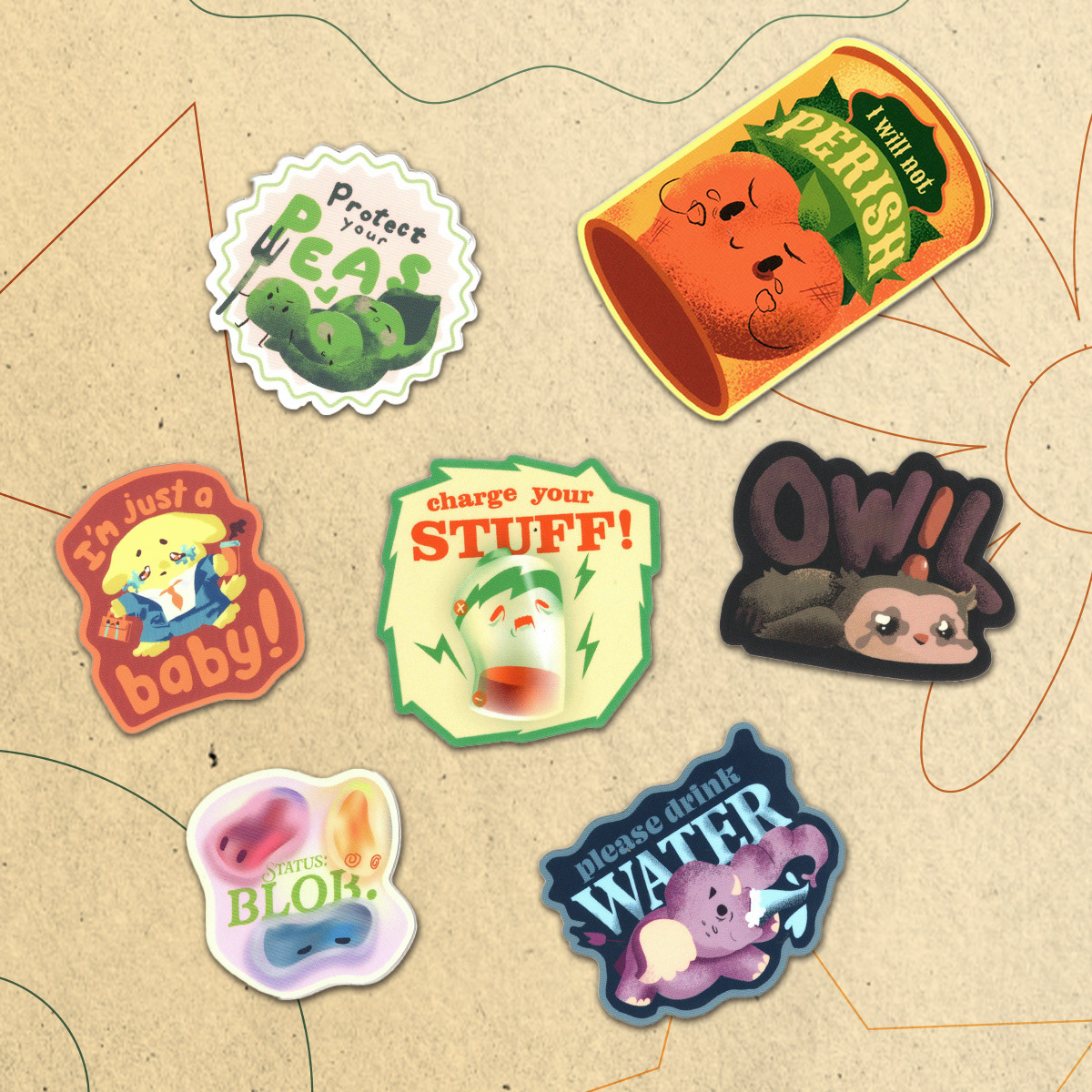 Here's some silly lil' stickers and stuff I made for my etsy shop!